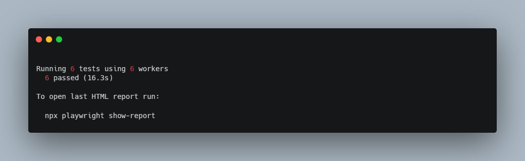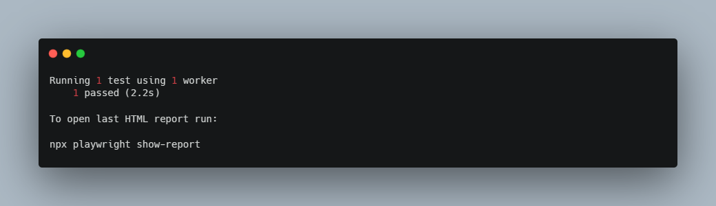 To view more details of the test run, run the npx playwright show-report command in your terminal. The npx playwright show-report command is used to display a detailed and interactive HTML report of the test results generated by Playwright tests. When you run your Playwright tests using the Playwright test runner, it automatically generates a report summarizing the test execution. This command is particularly useful when you want to review and analyze the results of your Playwright tests in a visual and interactive format. It enhances the visibility of test outcomes and supports in troubleshooting any issues that may have occurred during the test run. The report will look similar like the screenshot below.