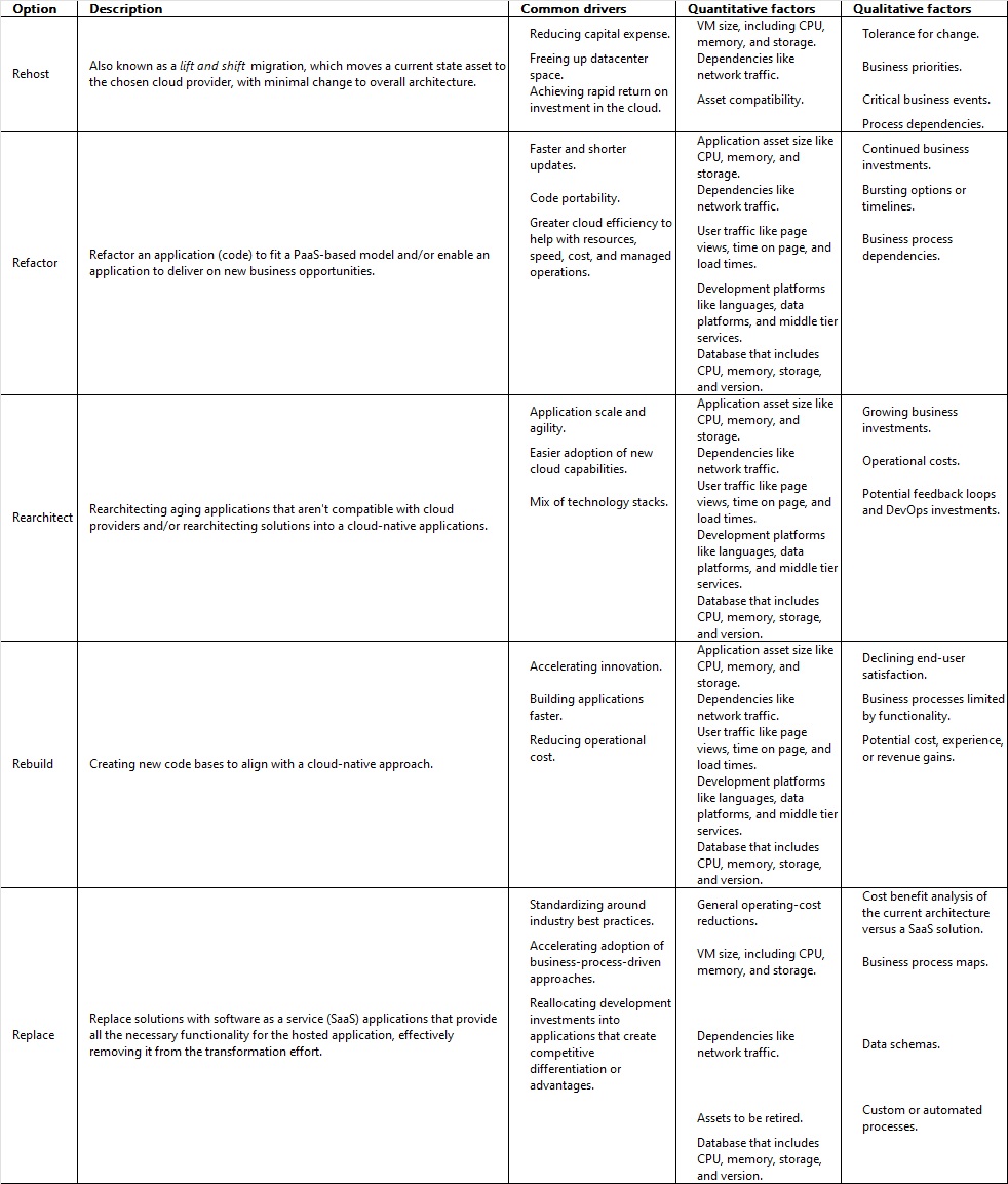 - A monolithic application that is no longer supported by the application vendor is not likely to qualify for a “Rebuild” or “Rearchitect” option.