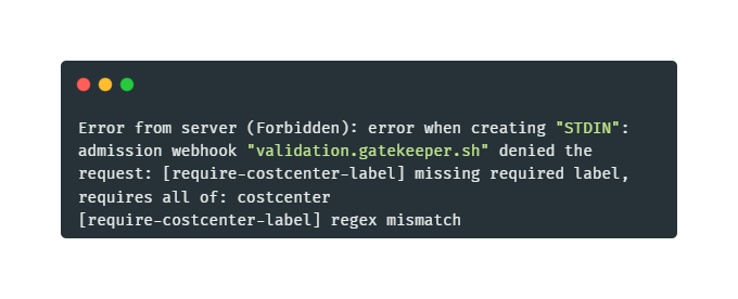 msg := "All workloads must have a 'costcenter' label for cost tracking."