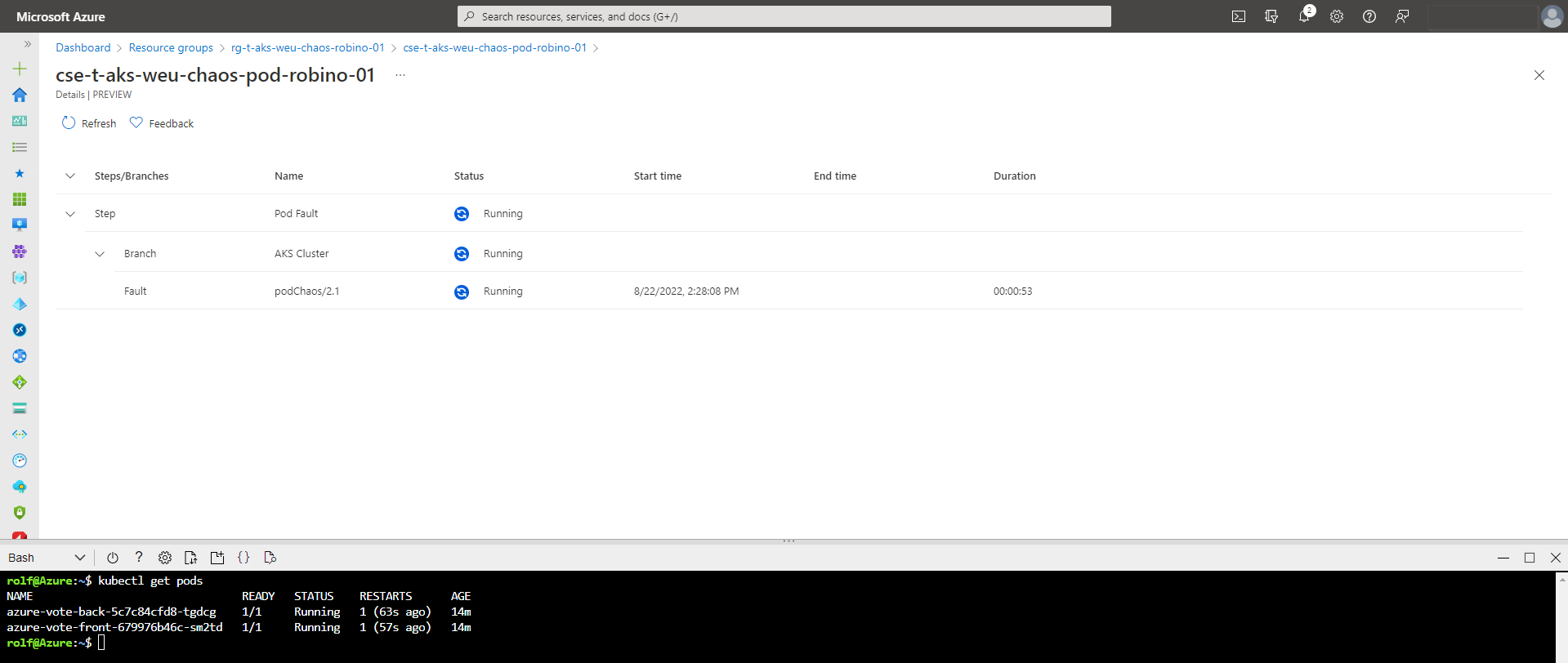 You’ll find that the pods tried to restart themselves. Our experiment continues injecting pod failures.