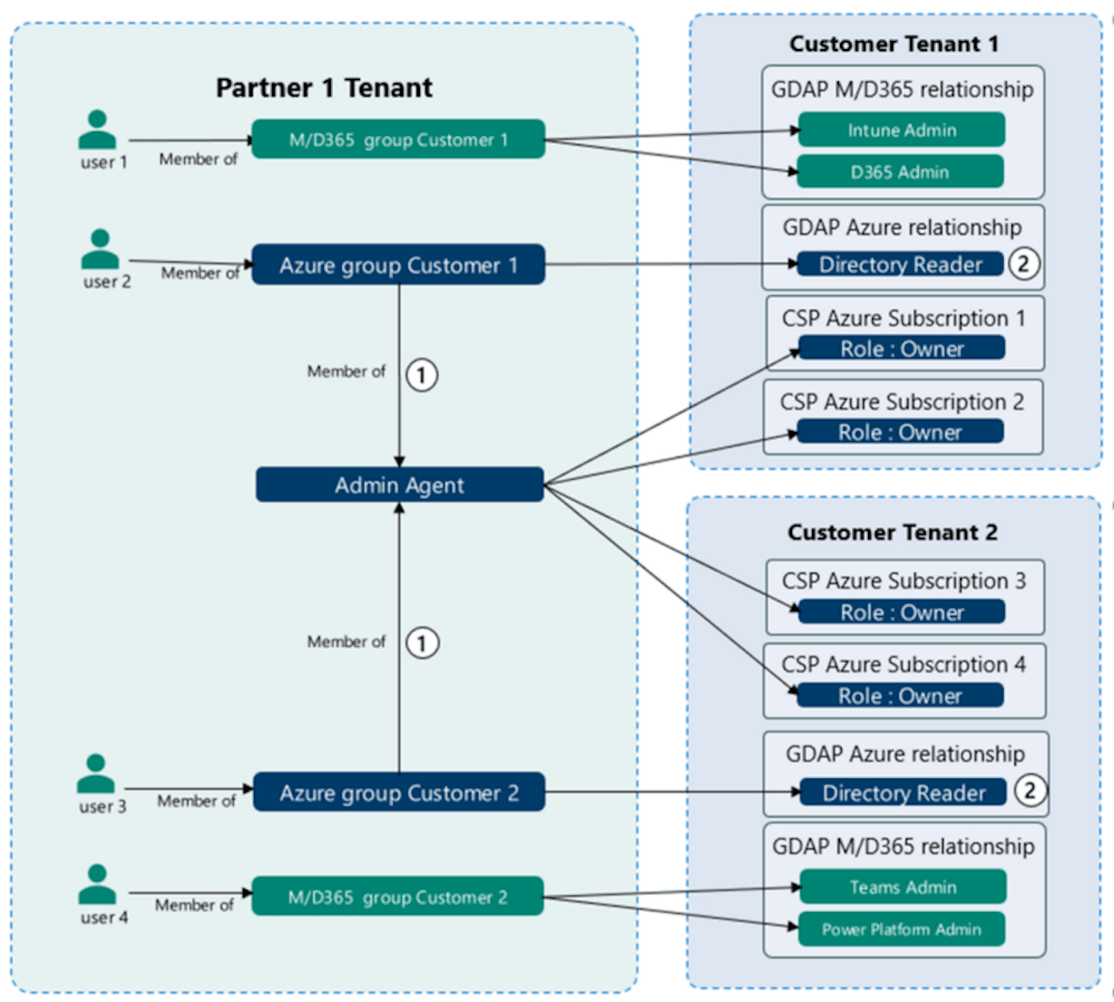 Admin On Behalf Of (AOBO) grants CSP partners delegated administrator privileges via the partner portal. When onboarding a customer’s CSP, the customer explicitly gives these permissions via the invitation link. This allows owner role-based access control (RBAC) access on all Azure subscriptions for that customer. Not long ago, partners were also given the Global Administration role in Azure Active Directory. Still, with the advent of granular delegated administration privileges (GDAP), they are now assigned lower permissions to read the directory by default. This follows the least-privileged access principles and the zero trust cybersecurity protocol.