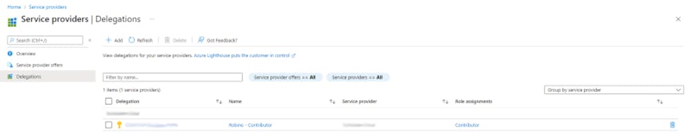 Once the deployment is completed, you can access the Azure Portal with your customer account to validate the deployment. You should see a delegation similar to the image below from the delegations blade in the Azure Lighthouse service.