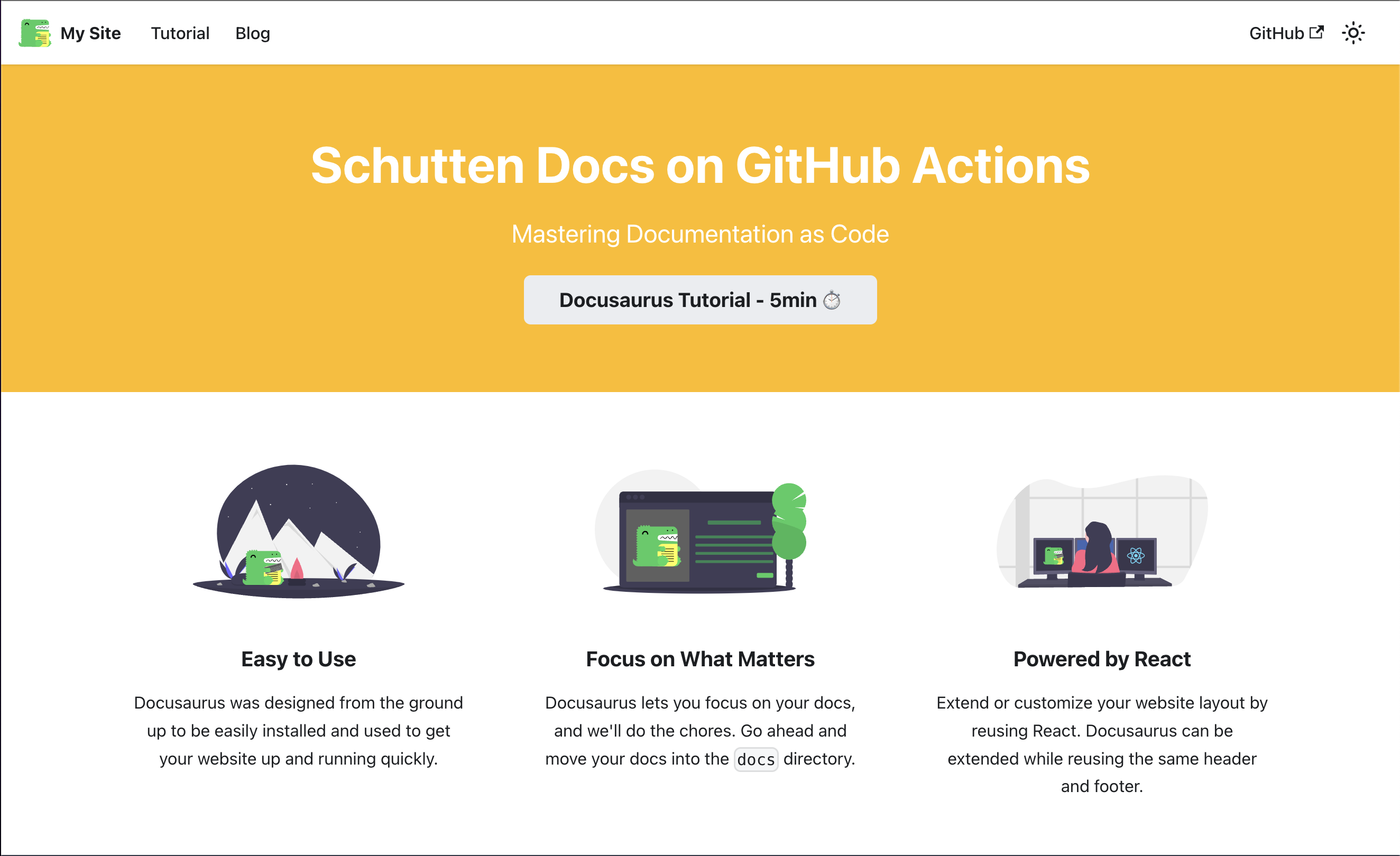 - Part III: “Automating Your Docs Build and Deployment with GitHub Actions”. This part contains a step-by-step guide for configuring GitHub Actions to automate your docs build and deployment.