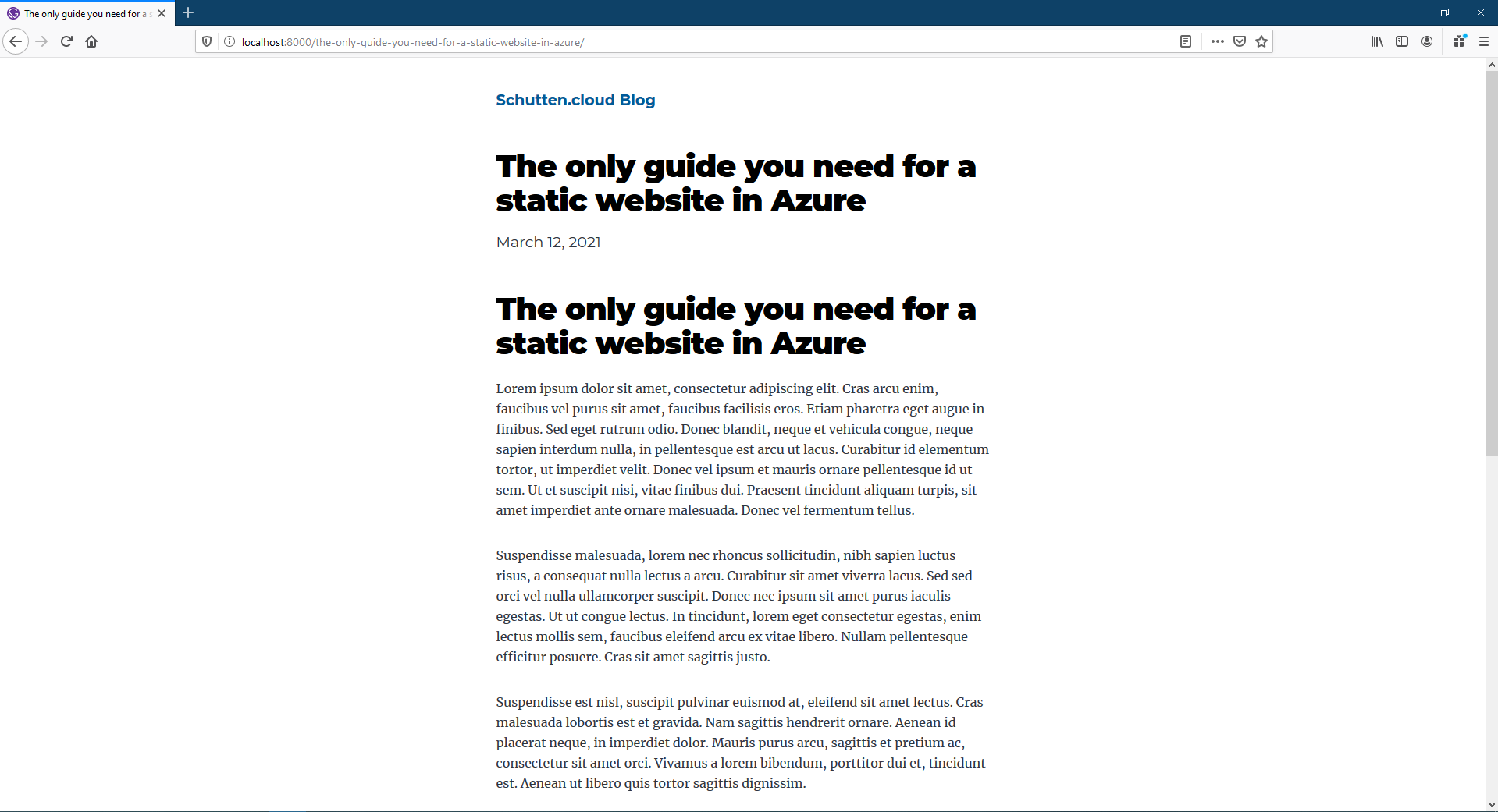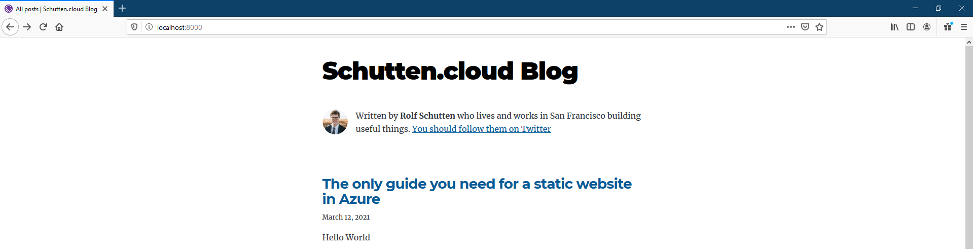 We’re at the end of the first article in this series. In this article, you learned what a static site generator is, what popular types of generators exist, and how to create a gatsby site based on a starter template. In the next article in this series, we’re going to host the site in Azure.